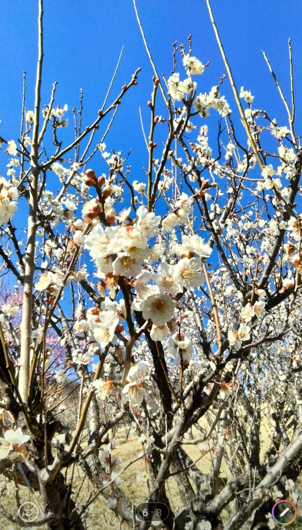 白い梅の花、とても綺麗です。本当に「あと、もう少し我慢すれば、暖かい春がやって来る。頑張ろう‼」